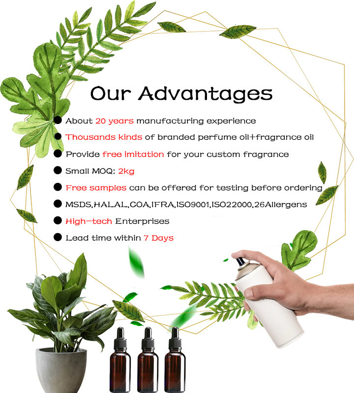 회사는 2010 년에 설립되었습니다. 그것은 고 기술 회사이며 중국의 광저우 국역 지역에 위치하고 있습니다. 회사는 주로 약 4000 종류의 맛과 7000 종류의 향기를 생산합니다.특히우리는 800종류의 향수를 생산할 수 있습니다.