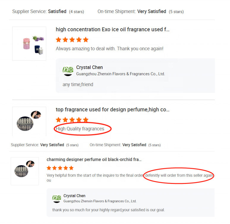 Guangzhou Zhenxin Flavor & Fragrance Co., Ltd.는 향료 및 향료 연구 개발 설계, 생산 및 판매를 통합하는 기업입니다. 회사는 2010년에 설립되었습니다. 중국 광저우 보세 구역에 위치한 첨단 기술 회사입니다. 회사는 주로 약 4000가지 종류의 향료와 7000가지 종류의 향수를 생산합니다. 특히 1000가지 이상의 향수 향을 생산할 수 있습니다.